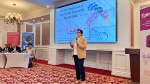 Кыргыз мамлекеттик медициналык институтунун (КГМИ жана ПК) акушердик, гинекология жана репродуктология кафедрасынын башчысы, медицина илимдеринин кандидаты, доцент Елена Анатольевна Кибец «Кош бойлуулардагы симптомсуз бактериурия: мүмкүн болгон татаалдашуулар» аттуу темадагы баяндамасында перинаталдык тобокелдиктерди азайтуу үчүн убагында диагностикалоо жана алдын алуу чараларынын маанисине токтолду.